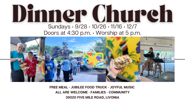 Dinner church is a relaxed and relational worship experience centered around a shared meal. This service includes music, prayer, scripture reading, a sermon reflection, and communion. Families and children are welcome and accomodations are available. Vegetarian meal options available.